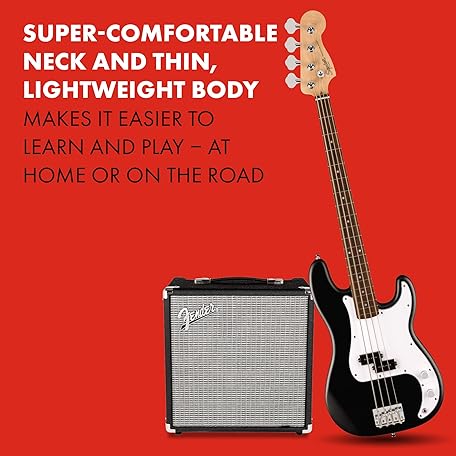 Thông tin sản phẩm Squier by Fender Debut Collection Precision Bass Guitar, Laurel Fingerboard, White Pickguard, Black