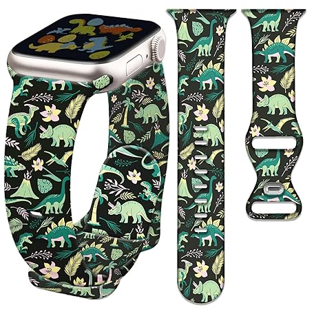 Sqweey Band Compatible with Apple Watch Band 38mm 40mm 41mm 42mm for Boys, Silicone Waterproof Replacement Strap for iWatch Bands Series 10 9 8 7 6 5 4 3 SE Ultra/Ultra 2, Cute Dinosaur Green