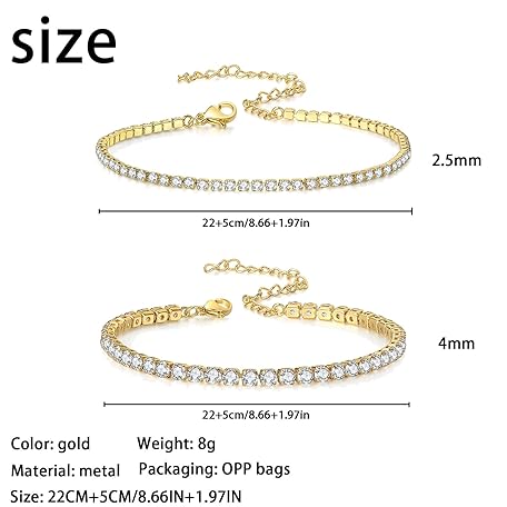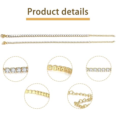 Thông tin sản phẩm SSKHE 2 Pcs Tennis Bracelet, Zirconia Ankle Bracelets for Women, Adjustable Gold Anklet