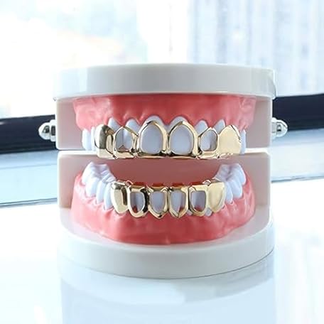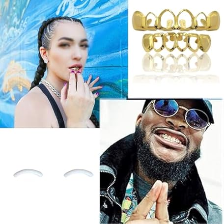 Sản phẩm SSyang 18K Hip Hop Teeth Grills for Mouth Braces Decoration with 2 Silicone Moldings Hip Hop Teeth Grills, for Mouth Top Bottom Music Festival Party Hip Hop Rapper Decorations (Gold,Hollow Style) đang được bán với giá ưu đãi là $13.3852 tại nước Anh.