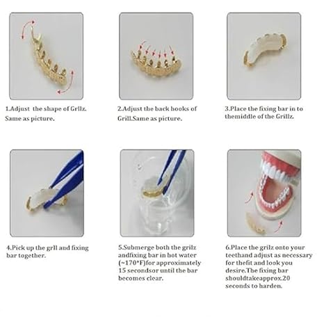 Thông tin sản phẩm SSyang 18K Hip Hop Teeth Grills for Mouth Braces Decoration with 2 Silicone Moldings Hip Hop Teeth Grills, for Mouth Top Bottom Music Festival Party Hip Hop Rapper Decorations (Gold,Hollow Style)
