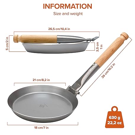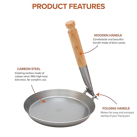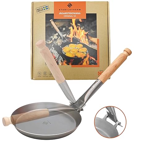 Thông tin sản phẩm Stabilotherm JÄGARSTEKPANNA Original Carbon Steel Frying Pan with Foldable Birch Handle, for Outdoor Indoor Cooking, Camping, Travel-Friendly