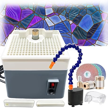 Stained Glass Grinder with Water Pump, Stained Glass Grinder Machine for Grinding Edge Multi Angles&Curves, Mini DIY Grinding Tool Kit with 3pcs Grinding Bit and 3pcs Grinding Disc