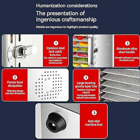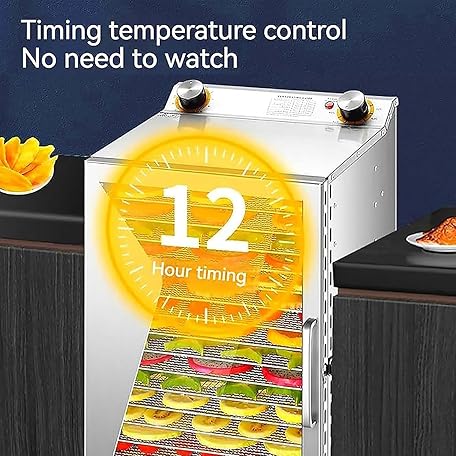 Thông tin sản phẩm Stainless Steel Food Dehydrator Machine, 800W Food Dryer for Home, 0-12h Adjustable Timer, 35-90 ℃Temperature Control, 360° Circulating Hot Air, for Fruits, Vegetables, Meat, Seafood 12-Tray