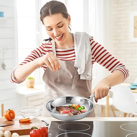 Thông tin sản phẩm Stainless Steel Frying Pan Cookware - 20-28CM Frying Pan Stainless Steel, Oven Safe Skillet Cooking Deep Skillet | Stainless Cookware, Frying for Steak and Eggs, Daily Use, All Cooking Methods