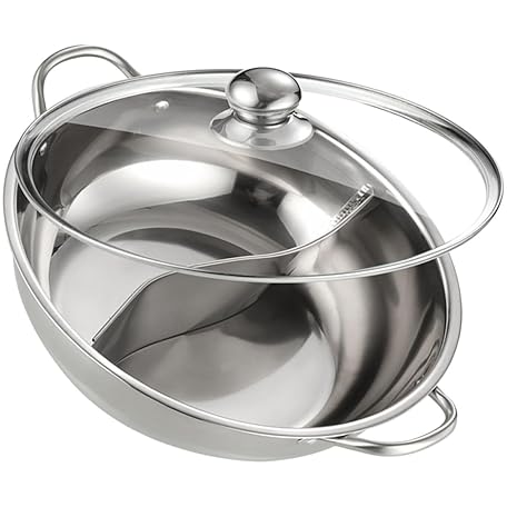 Stainless Steel Shabu Hot Pot with Divider and Lid Dual-Flavor Chinese Style Hot Pot for Induction Cooktop and Gas Stove for Family Gatherings