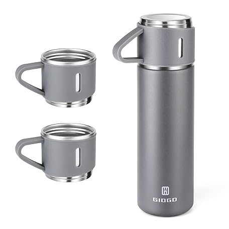 Stainless Steel Thermo 500ml/16.9oz Vacuum Insulated Bottle with Cup for Coffee Hot drink and Cold drink water flask.(Gray,Set)