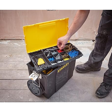 Thông tin sản phẩm STANLEY 3 in 1 Rolling Work Centre Toolbox with Pull Handle, Detachable Toolbox with Portable Tote Tray, 1-70-326 , Black