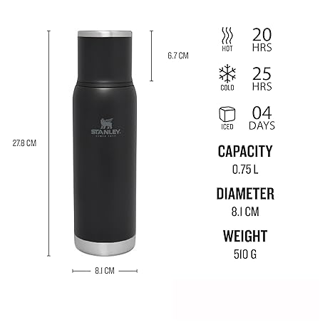 Sản phẩm Stanley Adventure to-Go Thermal Flask 0.75L - 20 Hours Hot - 25 Hours Cold - Leakproof - Insulated Lid - BPA-Free Insulated Bottle - Dishwasher Safe - Coffee Flask - Black đang được bán với giá ưu đãi là $57.3231 tại nước Anh.