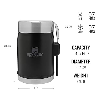 Thương hiệu Stanley là cái tên nổi tiếng được rất nhiều khách hàng trên thế giới chọn lựa. Với kiểu dáng đẹp mắt, sang trọng, sản phẩm STANLEY Classic Legendary Food Jar 0.4L With Spork - Keeps Cold For 7 Hours - BPA-Free Stainless Steel Soup Flask - Leakproof - Dishwasher Safe - Matte Black là sự lựa chọn hoàn hảo nếu bạn đang tìm mua một món cho riêng mình.