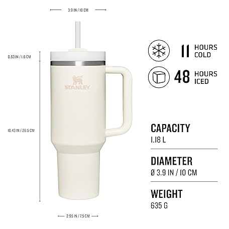 Thông tin sản phẩm STANLEY Quencher H2.0 Flowstate Tumbler 1.2L - Cold for 11 Hours - Iced for 48 Hours - Metal Water Bottle with Straw, Handle and Lid - Dishwasher Safe - Travel Mug for Cold Drinks - Cream