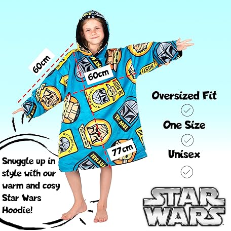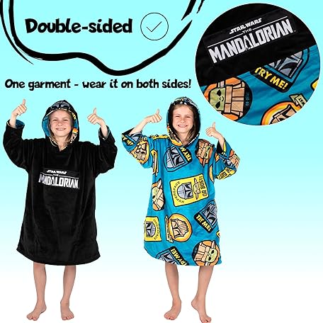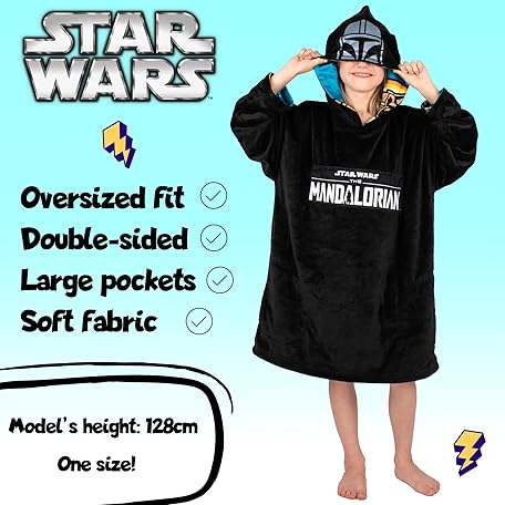 Sản phẩm Star Wars Mandalorian - Oversized Hoodie Reversiblee Hoodie Blanket for Kids Super Soft Double Sided Fleece Hoodie Gift for Boys One Size - Black/Blue đang được bán với giá ưu đãi là $25.1681 tại nước Anh.