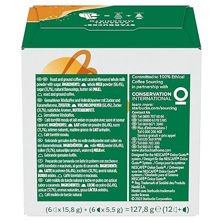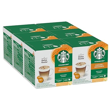Thông tin sản phẩm STARBUCKS Caramel Macchiato by NESCAFÉ Dolce Gusto, 72 Caramel Macchiato Coffee Pods (6 packs), Flavoured Coffee