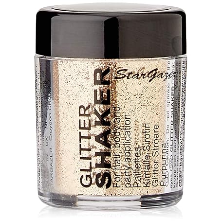 Stargazer Glitter Shaker, Gold. Cosmetic glitter powder for use on the eyes, lips, face, body, hair and nails.