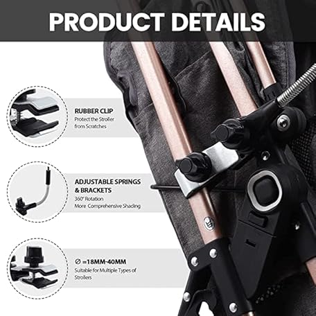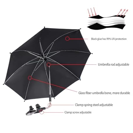 Thông tin sản phẩm STARRY CITY Baby Pram Parasol with Adjustable Clamp,Children Buggy Sun-Proof Umbrella Clip On UPF 50+ Great for Pushchair,Strollers