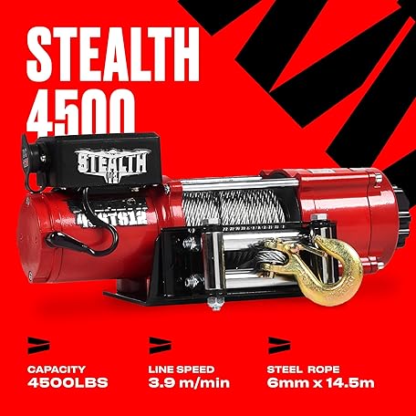 Thông tin sản phẩm Stealth 4500lb 12v Wireless Recovery Budget Electric Winch - Powerful Wound Motor - Full Steel Gearing - Heavy Duty Solenoid, Mounting Plate, Wireless Remotes - User-Friendly - Steel Rope