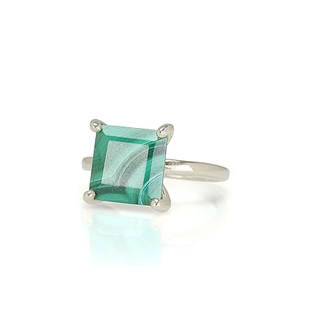 Sterling Silver Square Malachite Ring - Princess Cut Gemstone Engagement Ring - Unique Silver Ring with Green Stone