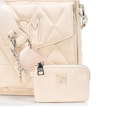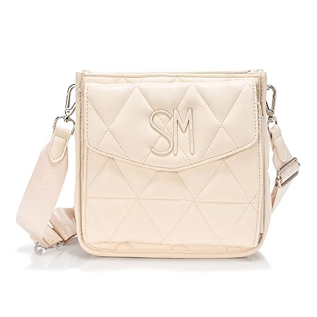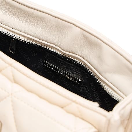 Steve Madden Women's Bmezza Quilted Messenger Bag Crossbody, White, One Size