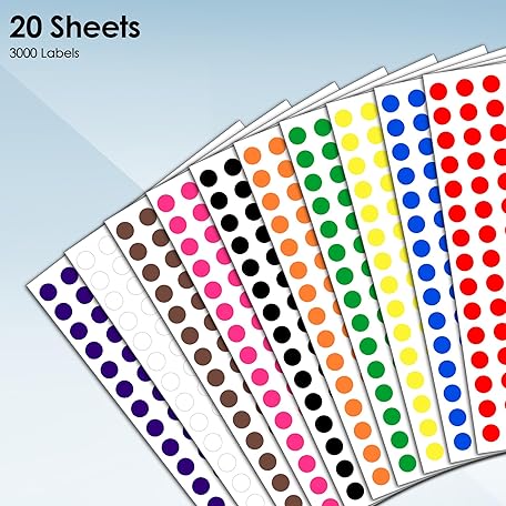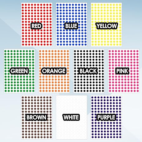 Thông tin sản phẩm Sticky Dots 3000, Coloured Dot Stickers, 10mm Round Sticker with 10 Assorted Colours Circle Self Adhesive Labels for Event Activity Schools Coding DIY Crafts Gift