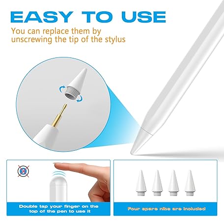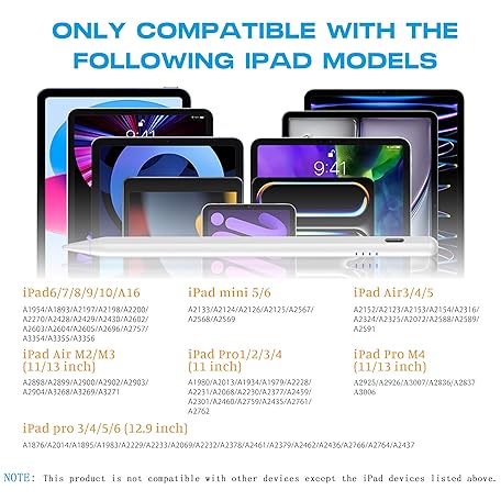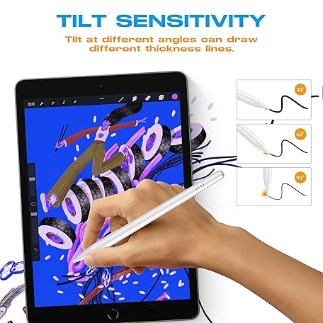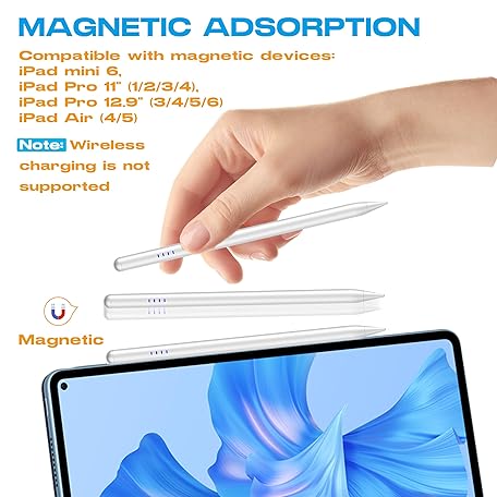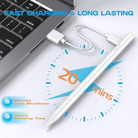 Thông tin sản phẩm Stylus for iPad (2018-2025), Fast Charging, Pixel Precision, Palm Rejection, Tilt Sensitivity, Magnetic Storage, Pencil Compatible with iPad A16/10-6 Gen, Pro M4 11"/12.9"/13", Air M3/M2 3-5, Mini 5-6