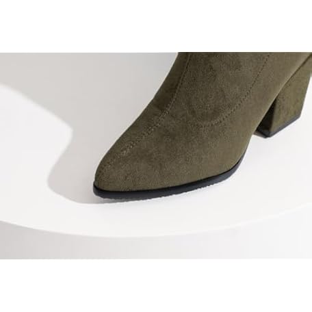 Thông tin sản phẩm Suede Women Knee High Boots Pointed Toe Zip High Heel Block Heel Handmade Long Shaft Boots for Women Large Size 35-46 zb-361, Green, 7 UK