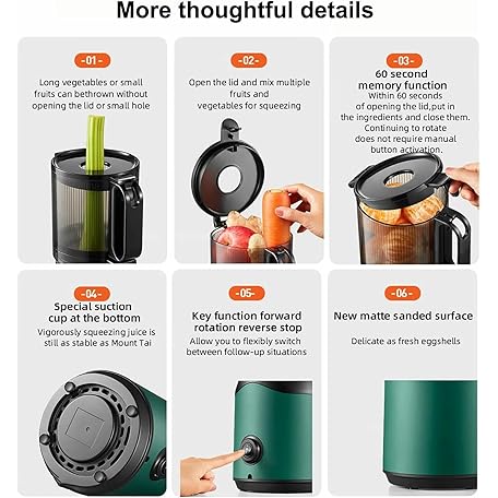 Thông tin sản phẩm Sugar Cane Squeezer, Cold Pressed, Professional Slow Squeezer, 13 Cm Feed Hopper, Portable Rust Separator (green)