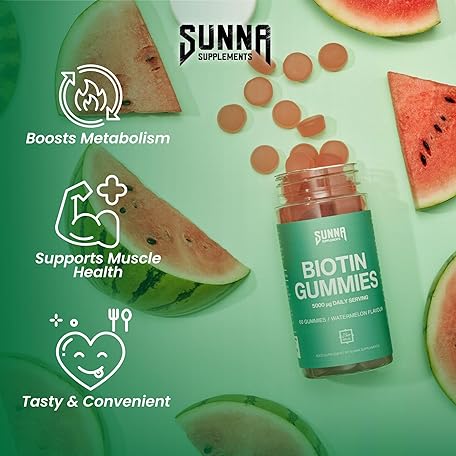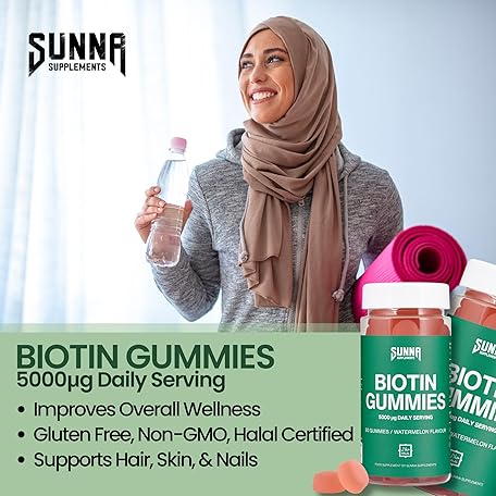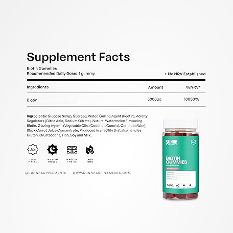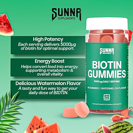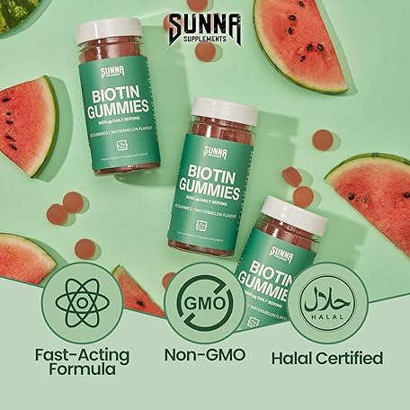 Thông tin sản phẩm SUNNA SUPPLEMENTS Biotin Gummies 5000mcg – Halal, Gelatine-Free Hair Growth Gummies for Women – Supports Hair, Skin & Nails – Natural Watermelon Flavour – 60 Count