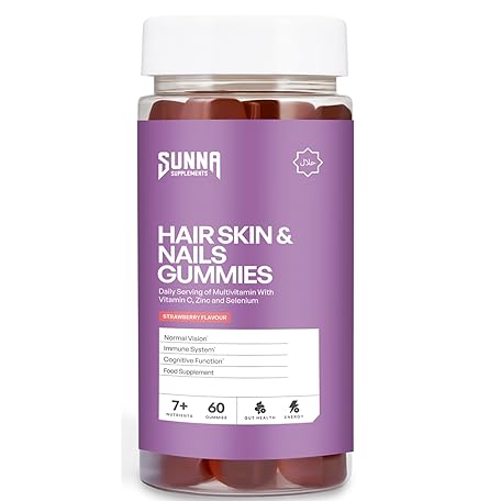 SUNNA SUPPLEMENTS Halal Biotin Hair, Skin & Nails Gummies – Zinc & Multivitamins – Vegan, Gelatin-Free – 60 Gummies