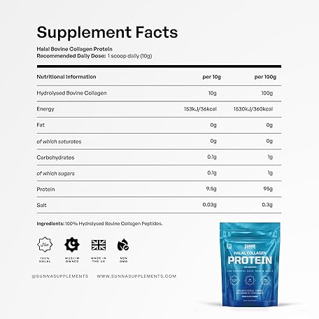 Sản phẩm SUNNA SUPPLEMENTS Halal Bovine Collagen Protein Powder for Hair Skin Nails and Joints - Type (I, III) Hydrolysed Premium Bovine Collagen Peptides for Women and Men | Gluten Free | Unflavoured đang được bán với giá ưu đãi là $34.8909 tại nước Anh.