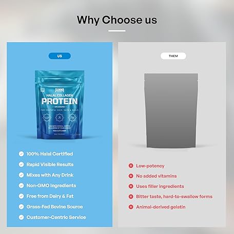 Thông tin sản phẩm SUNNA SUPPLEMENTS Halal Bovine Collagen Protein Powder for Hair Skin Nails and Joints - Type (I, III) Hydrolysed Premium Bovine Collagen Peptides for Women and Men | Gluten Free | Unflavoured