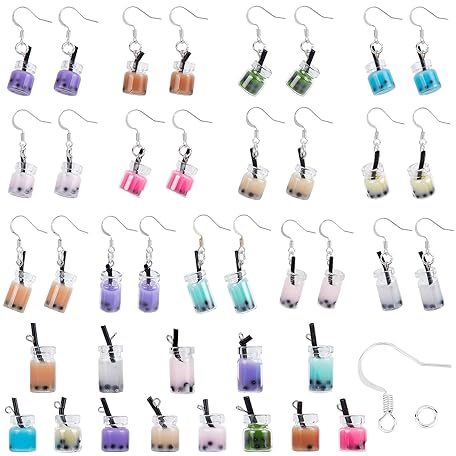SUNNYCLUE 1 Box 13 Styles Milk Tea Charms Bubble Tea Charms Colorful Mini Boba Drink Fruit Juice Charms Bulk for Jewellry Making DIY Craft Earring Keychain Pendants Dangle Earring Making Kits