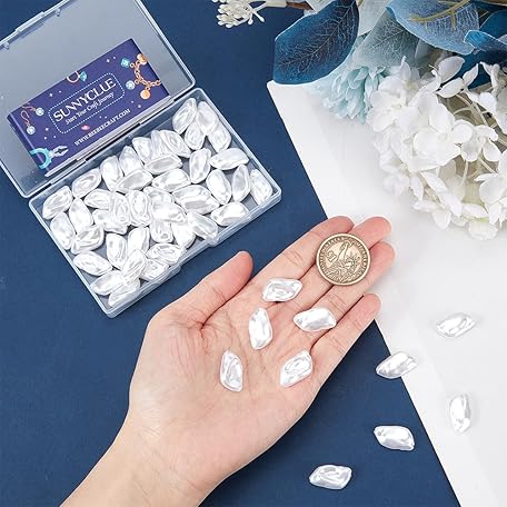 SUNNYCLUE 1 Box About 60Pcs Plastic Pearl Bead Bulk Imitation Pearl Beads Snow White Irregular Baroque Loose Pearls Charms for Jewellery Making Beads Assortments DIY Crafts Necklace Bracelet Earring