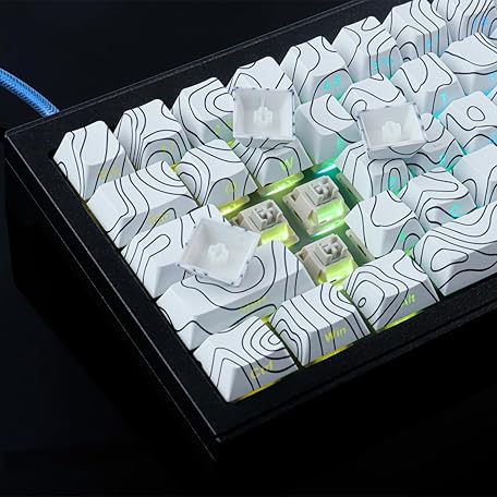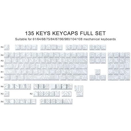 Thông tin sản phẩm Sunzit Custom Keycaps - 135 Keys PBT Set, Topographic Dye-Sub White Keycaps for Cherry MX Switches, ISO/ANSI UK Layout Mechanical Gaming Keyboard
