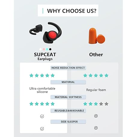 Thương hiệu SUPCEAT là cái tên nổi tiếng được rất nhiều khách hàng trên thế giới chọn lựa. Với kiểu dáng đẹp mắt, sang trọng, sản phẩm SUPCEAT Ear Plugs for Sleeping Noise Canceling, 2 Pairs(S/L) Reusable&Washable Earplugs Sound Blocking, Soft Silicone Noise Reduction Ear Plug for Sleep, Music, Parties, Festivals, Concerts là sự lựa chọn hoàn hảo nếu bạn đang tìm mua một món cho riêng mình.