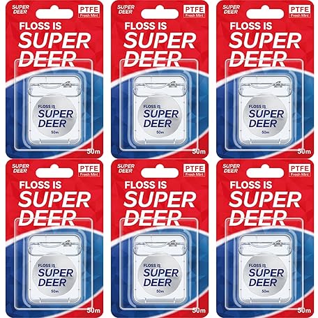 Sản phẩm Super Deer Flat Dental Floss - Mint, PTFE Floss, Gentle on Gums, Expands & Stretches,Plaque Remover for Teeth, Shred Resistant, Floss Slides Smoothly, Easy to Use, 55 yd (6) đang được bán với giá ưu đãi là $36.6676 tại nước Anh.