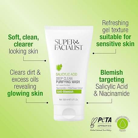 Thông tin sản phẩm Super Facialist Salicylic Acid Anti Blemish Purifying Cleansing Wash with Niacinamide (Vitamin B3), Face Cleanser & Face Wash for Clean and Clear Skin & Treat Acne, 150ml