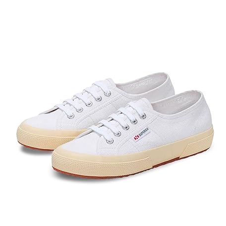 Superga 2750 Cotu Classic Canvas Sneakers for Men and Women – Low-Top Lace-Up Shoes with Rubber Sole and Cushioned Insole, White/Off-white, 5 Women/3.5 Men