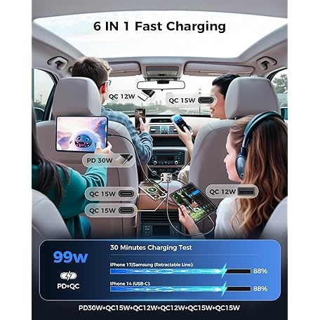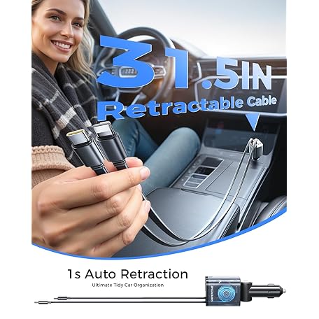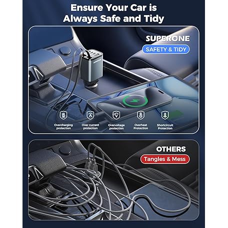 Thông tin sản phẩm SUPERONE Retractable Car Charger, [Ultra-Compact] 6-Port Car Charger USB C, Phone Car Chargers Fast Charging with USB C & Apple Cable, Car Accessories Phone Chargers for 17/16/15/14/13/12 Series