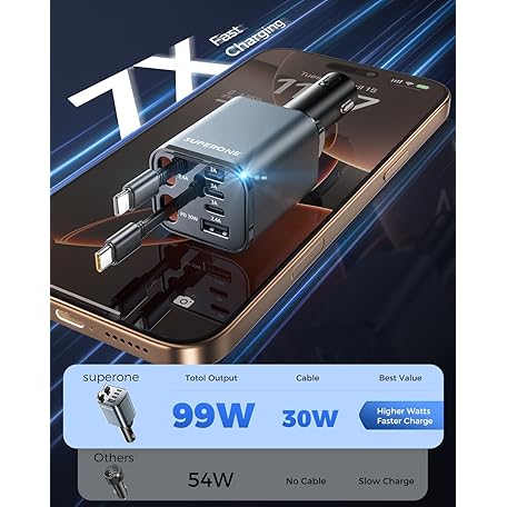 Thương hiệu SUPERONE là cái tên nổi tiếng được rất nhiều khách hàng trên thế giới chọn lựa. Với kiểu dáng đẹp mắt, sang trọng, sản phẩm SUPERONE Retractable Car Charger, [Ultra-Compact] 6-Port Car Charger USB C, Phone Car Chargers Fast Charging with USB C & Apple Cable, Car Accessories Phone Chargers for 17/16/15/14/13/12 Series là sự lựa chọn hoàn hảo nếu bạn đang tìm mua một món cho riêng mình.