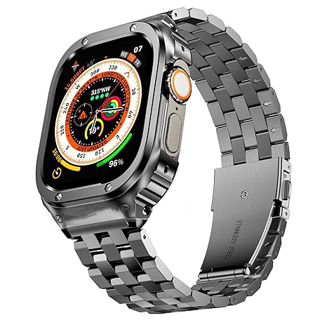 SUPLINK Stainless Steel Case with Band Compatible with Apple Watch Straps Ultra 2/1 49mm Metal Rugged Protector Cover for iWatch Band Men (Space Grey)