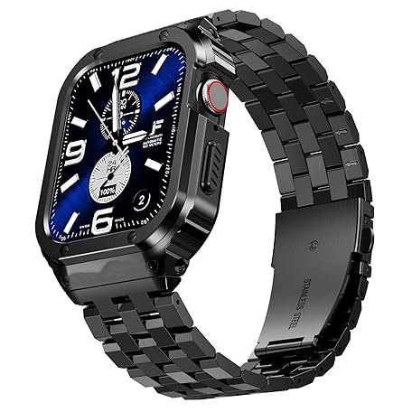 SUPLINK Stainless Steel Case with Strap Compatible Apple Watch Straps 38 mm/40 mm/41 mm/44 mm/45 mm/49 mm, Robust Metal Case and Bumper Strap for iWatch Ultra Series 9/8/7/6/5/4/3/2/1 SE Watches