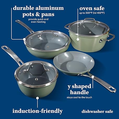 Sản phẩm Sur La Table Kitchen Essentials 10 Piece PFA Free Non-Toxic Titanium Ceramic Nonstick Interior Forged Aluminum Cookware Pots and Pans Set - Green - Induction Compatible đang được bán với giá ưu đãi là $181.2125 tại nước Anh.