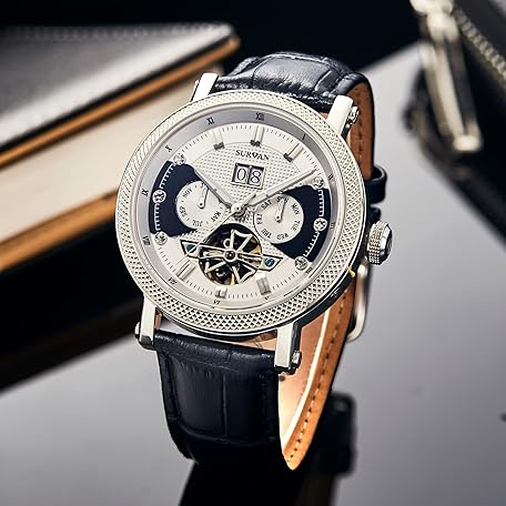 Sản phẩm SURVAN WatchDesigner Watch for Men Sapphire Crystal Mechanical Skeleton Automatic Men's Wrist Watches Ion-Plated Leather Strap Copper Watch Needle đang được bán với giá ưu đãi là $156.2624 tại nước Anh.