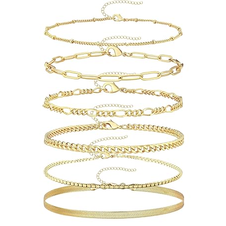 Suupii 6 PCS Gold Bracelets for Womens Set, Stackable Gold Bangles Dainty Ladies Bracelets Golden Bangles, Womens Bracelet Suitable for Daily Life Parties Birthday Gift Giving