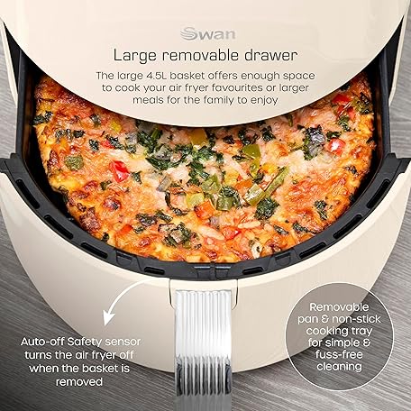 Thông tin sản phẩm Swan SD10513C Retro Digital Air Fryer with Swan Cyclone Technology, 8 Pre-Set Cooking Options, Adjustable Temperature, 4.5L 1500W, Cream