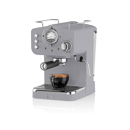Sản phẩm Swan SK22110GRN Retro Espresso Plastic Coffee Machine with Milk Frother, Steam Pressure Control, 1.2L Detachable Water Tank, 1100W, Retro Grey đang được bán với giá ưu đãi là $107.692 tại nước Anh.