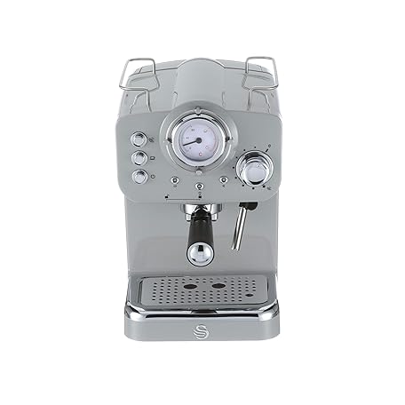 Thông tin sản phẩm Swan SK22110GRN Retro Espresso Plastic Coffee Machine with Milk Frother, Steam Pressure Control, 1.2L Detachable Water Tank, 1100W, Retro Grey