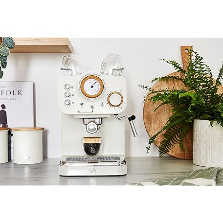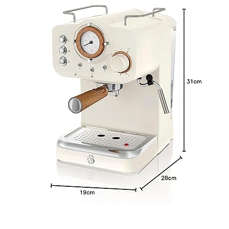Thông tin sản phẩm Swan SK22110WHTN Nordic Espresso Coffee Machine with Milk Frother, Steam Pressure Control, 1.2L Detachable Water Tank, 1100W, Nordic Cotton White