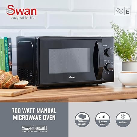 Thông tin sản phẩm Swan SM4420BLK Manual Microwave with 5 Power Levels, 35 Minute Timer, 700W, 20L, Black