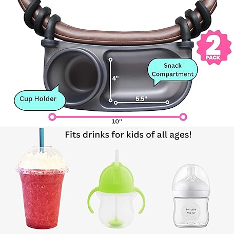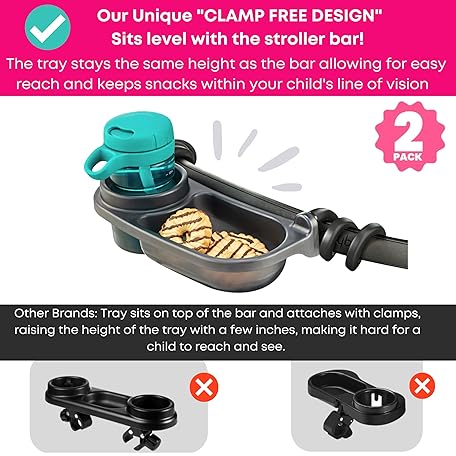 Swanoo Universal Stroller Snack Tray | Stroller Cup Holder | Silicone Arms Grip Bumper Bar | Stays in Place | Stroller Tray Attachment with Cups Holder for Baby Toddler | Stroller Accessories 2 Pack